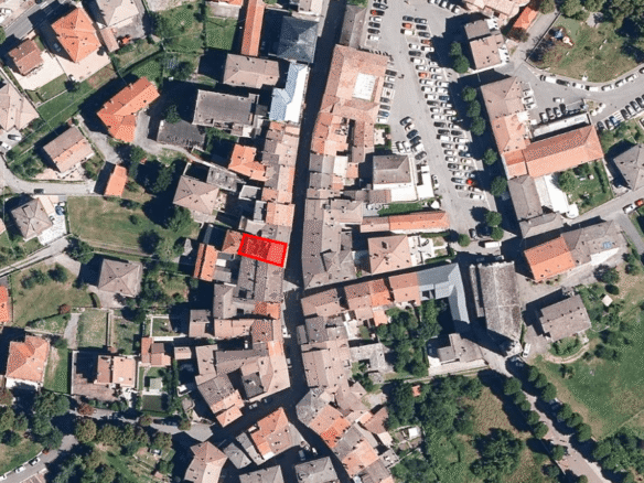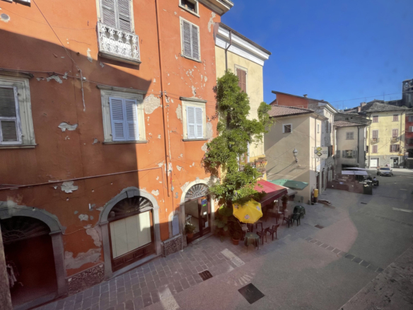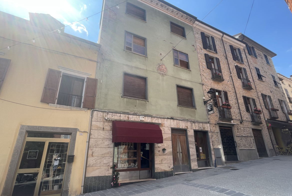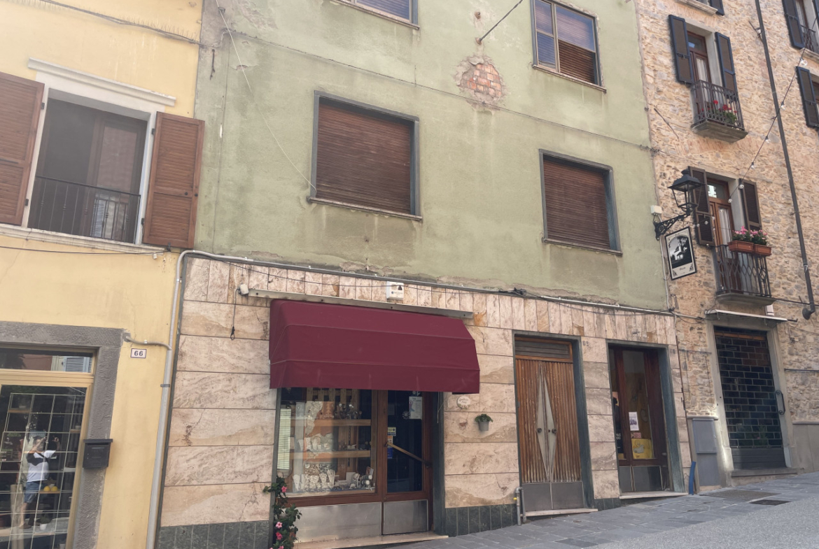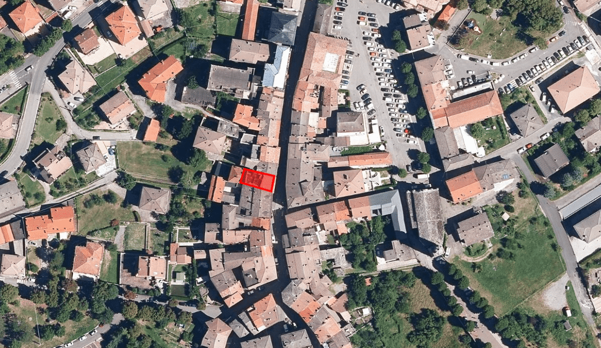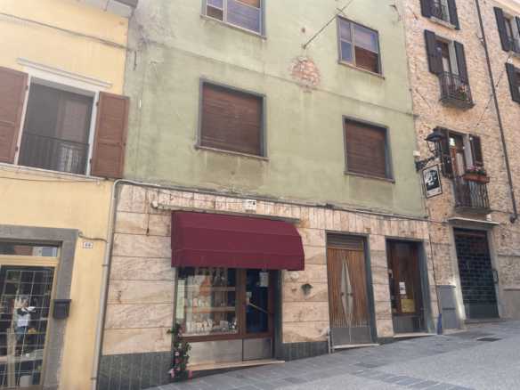 L’edificio e suddiviso oggi in 3 unità abitative oltre a due locali commerciali a piano terra, si trova in una zona a traffico limitato in Via Pietro Cella nella via principale del paese.