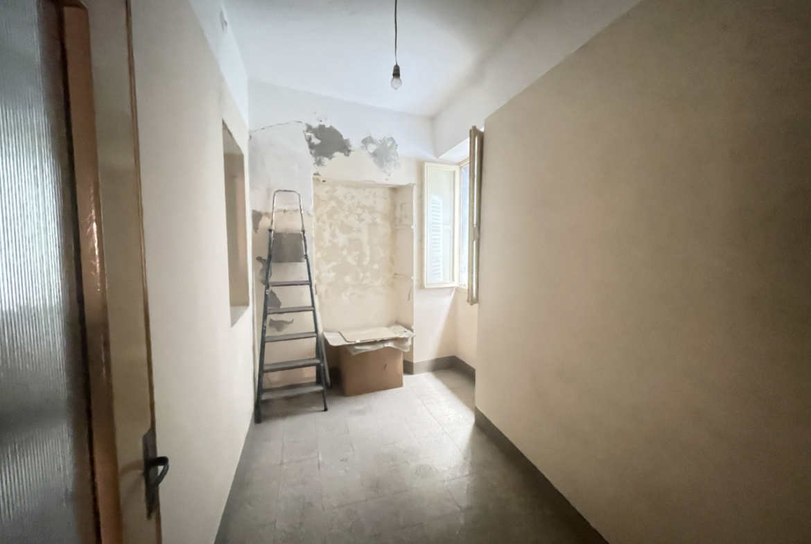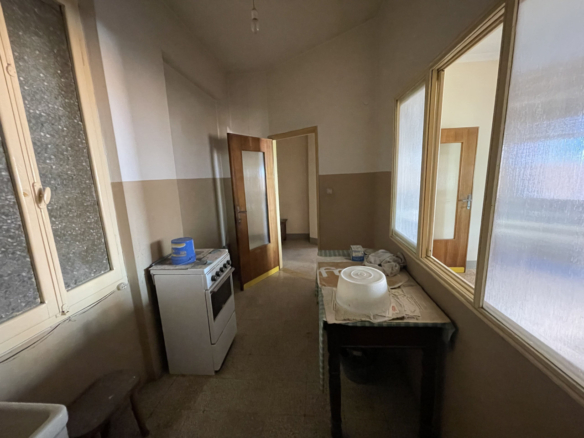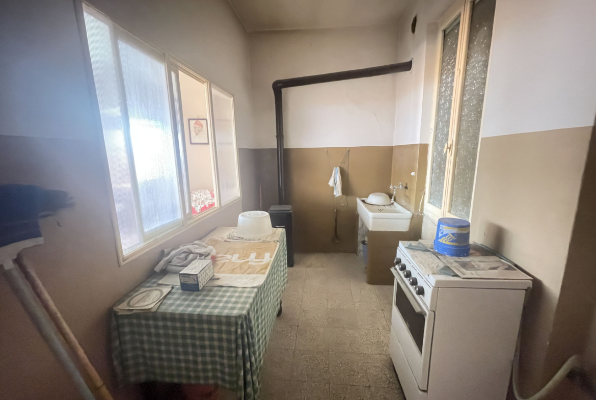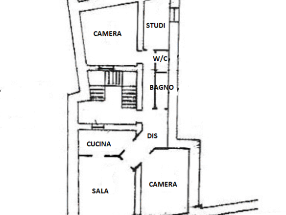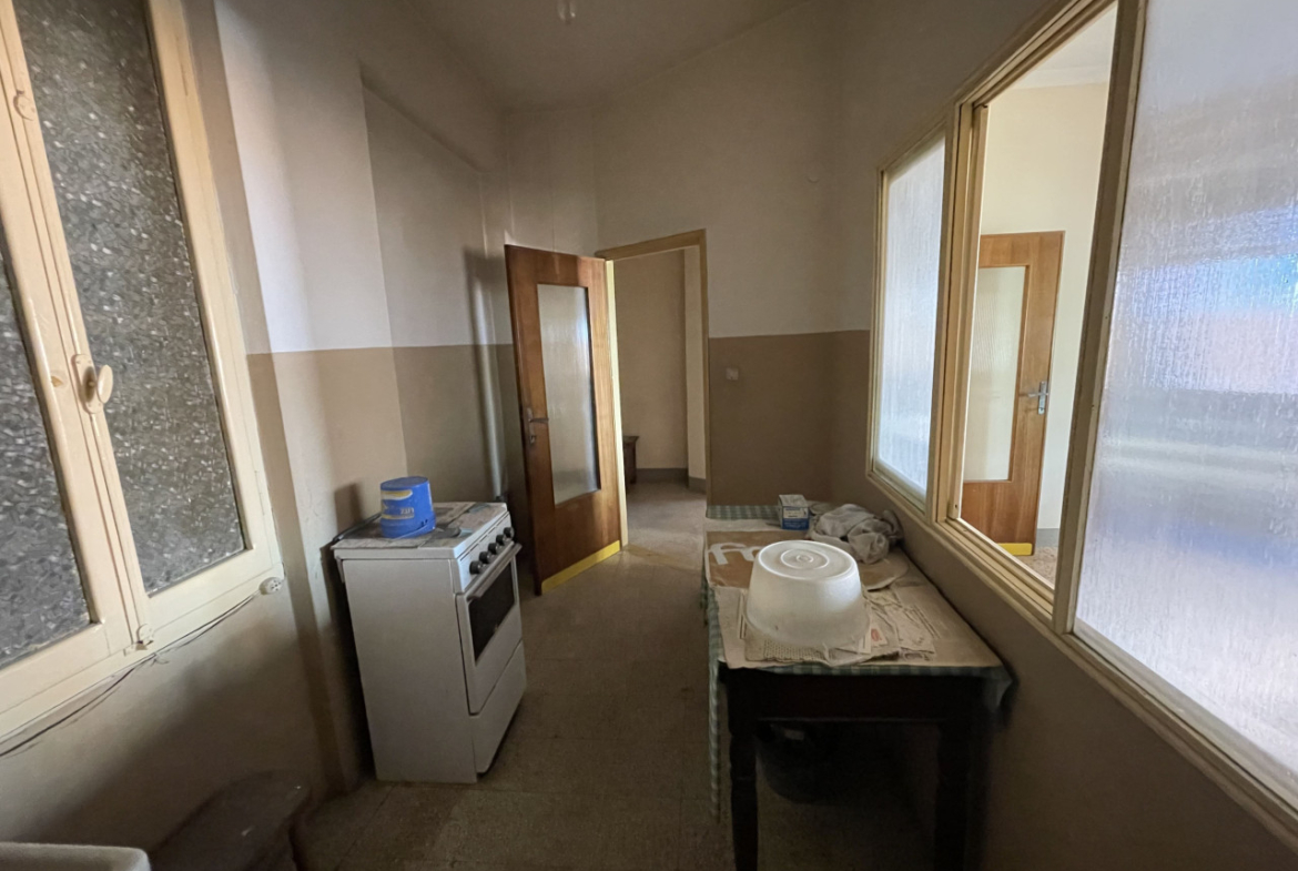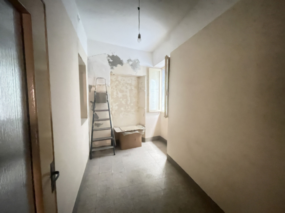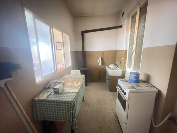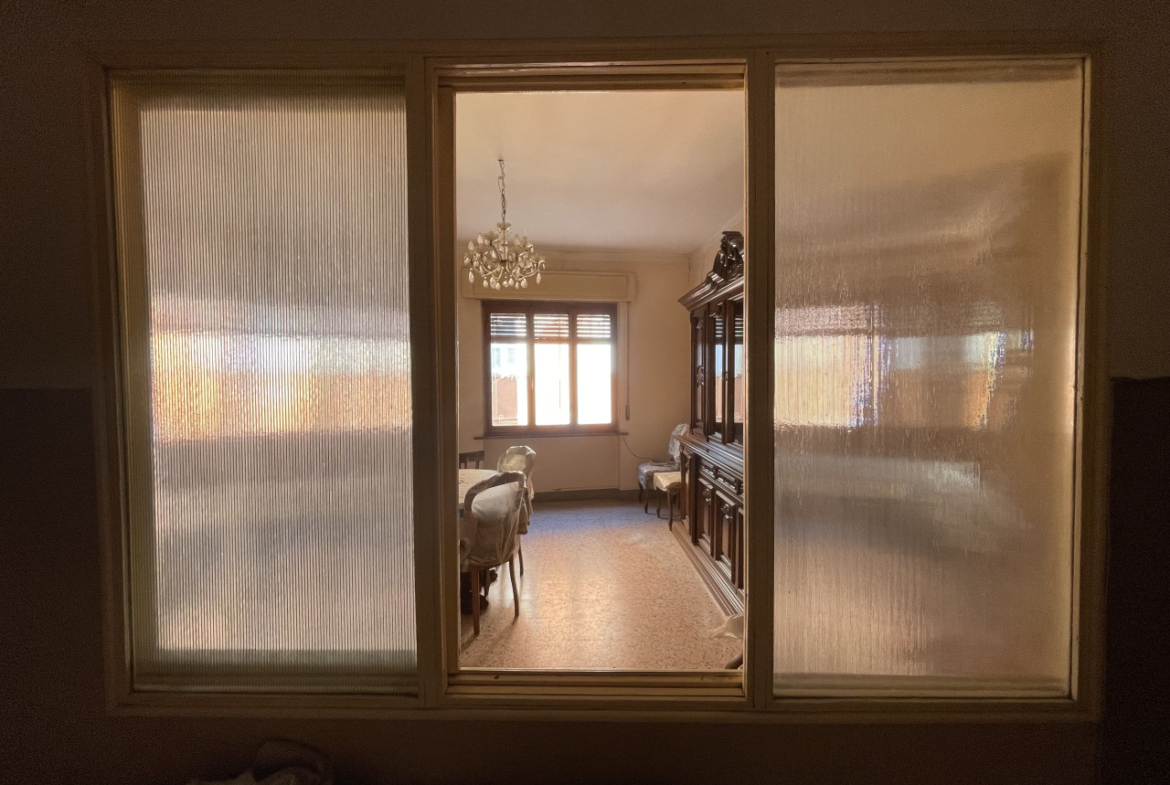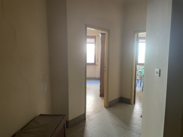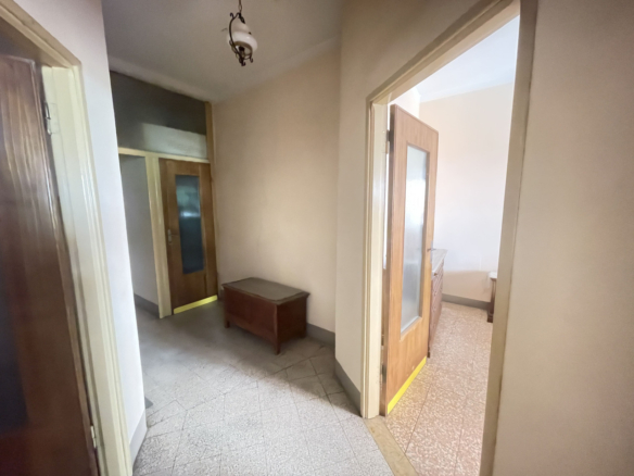 L’appartamento che necessità un intervento di modernizzazione, si sviluppa interamente al primo piano in cui troviamo: una cucina, luminoso soggiorno, due camere da letto matrimoniali, un bagno con vasca, un altro locale W/C ed in fine uno studio/terza camera.