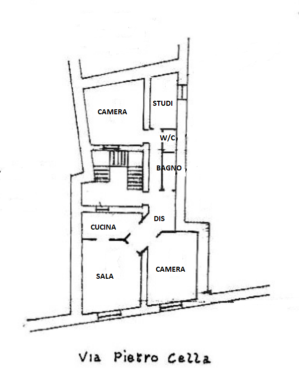 L’accesso alla proprietà si ha direttamente da Via Pietro Cella tramite un portone comunale da cui è possibile accedere alla scala comune del palazzo.