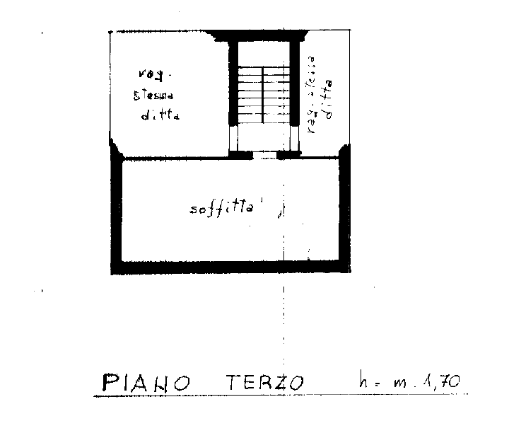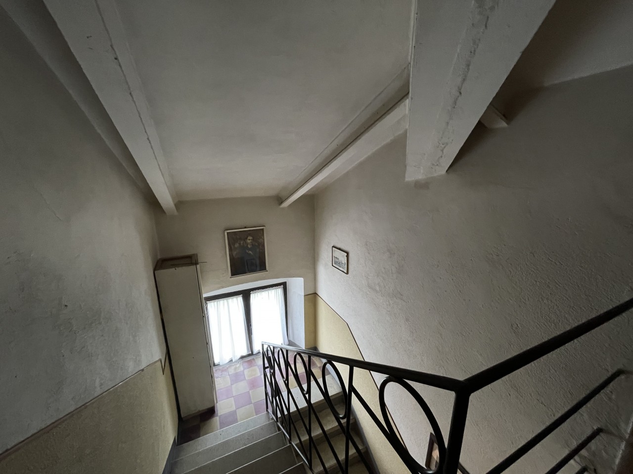 Alla proprietà vi si accede direttamente dalla strada attraverso un ballatoio che conduce fino al portone d’ingresso del condominio. Oltrepassando l’androne, a sinistra troviamo gli accessi secondari ai negozi del piano terra, mentre a destra la scala che con i suoi pianerottoli intermedi panoramici conduce fino all’ultimo piano.