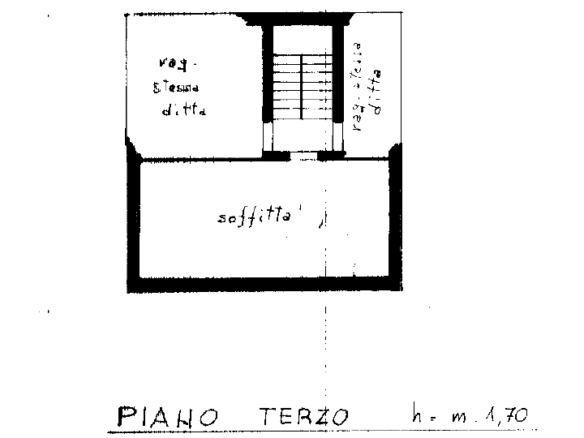 All’appartamento posto al secondo piano, senza ascensore, è possibile accedere grazie a 3 porte distribuite sui 3 lati del pianerottolo ma solo una di queste, quella centrale comunicante direttamente con la zona giorno, è attualmente in uso.