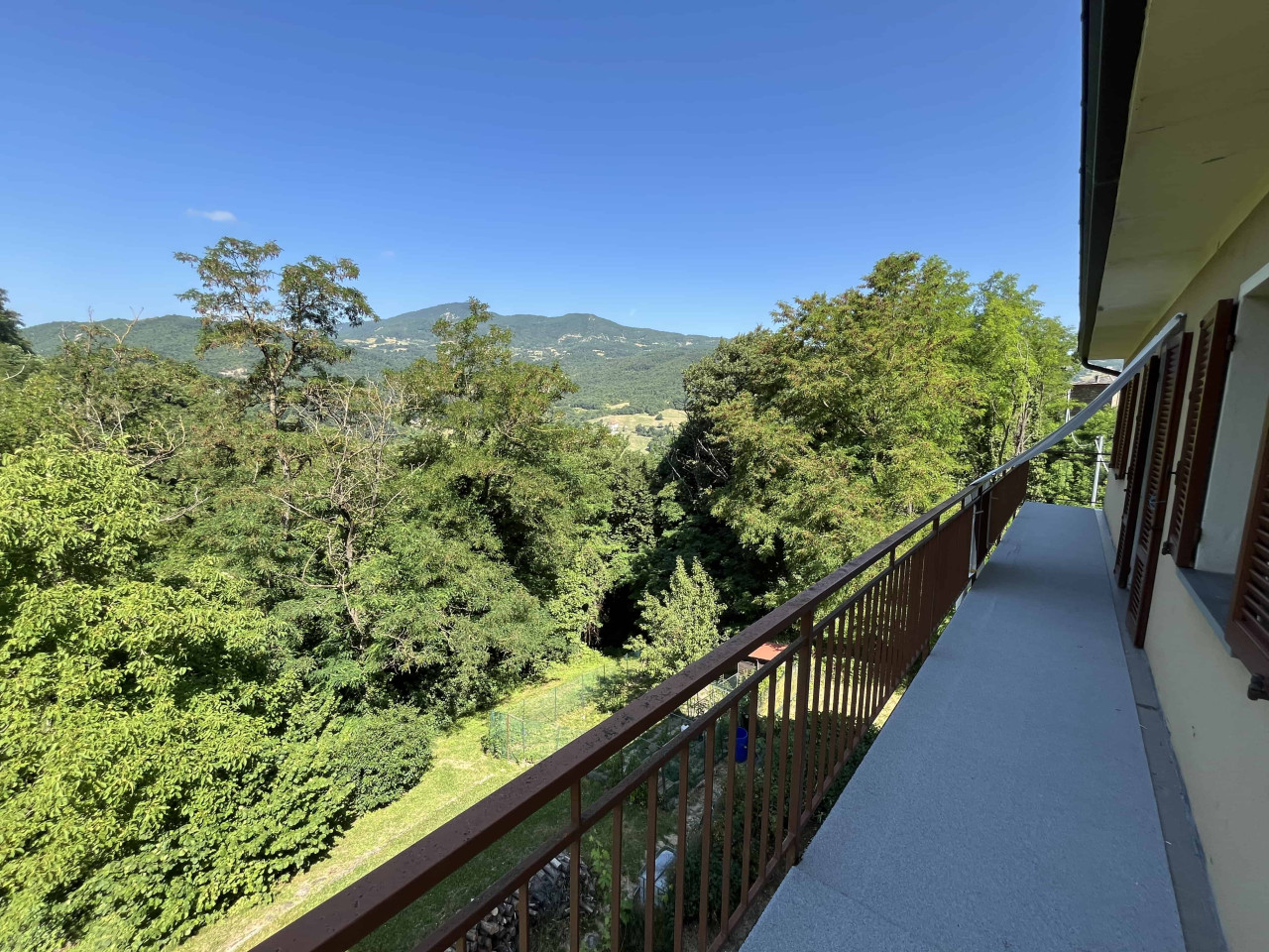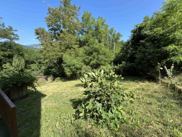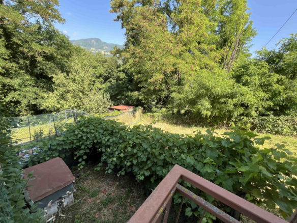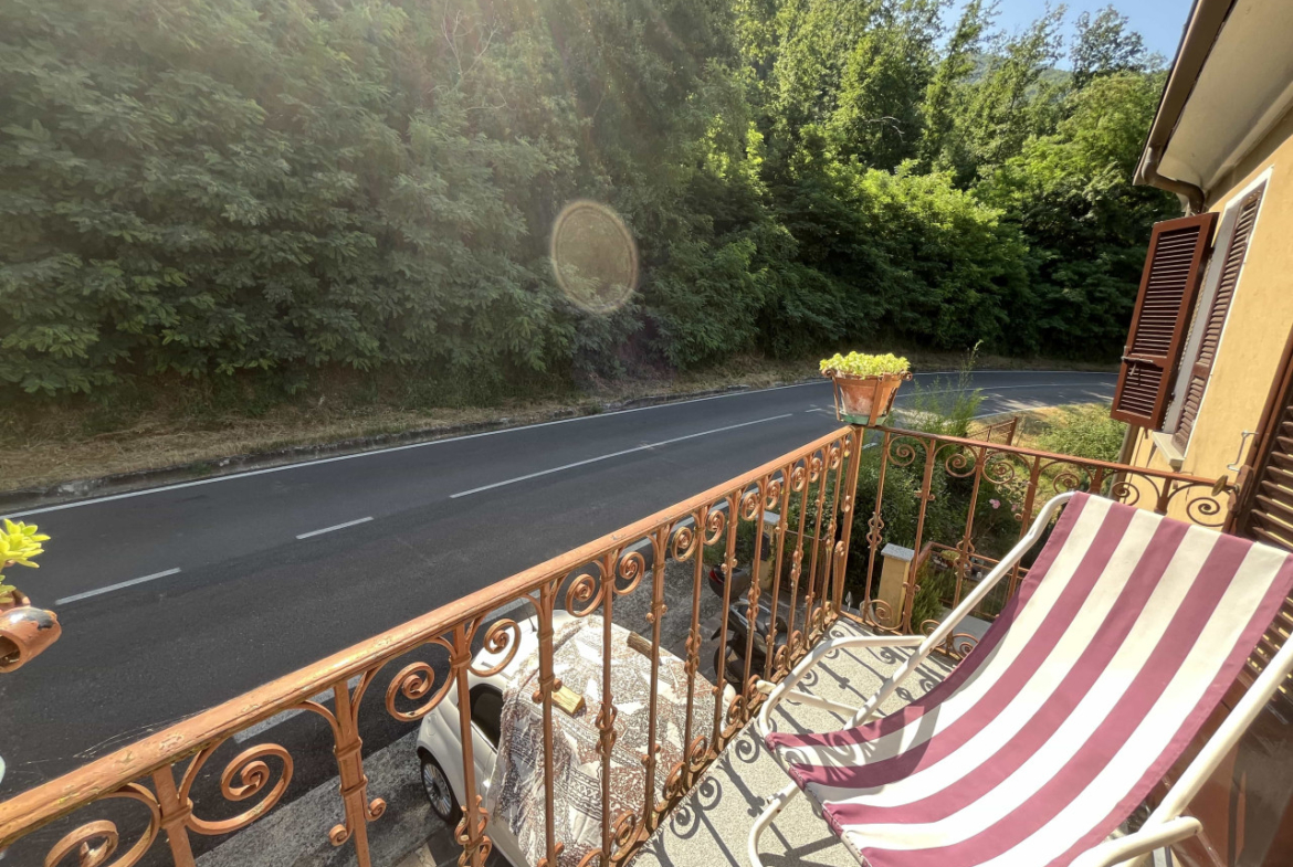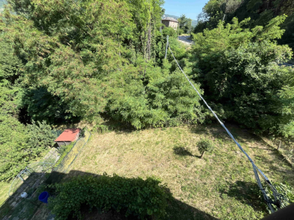 La proprietà gode di due preziosissimi spazi esterni entrambi panoramici con vista sulla valle che sono: un romantico balcone, che percorre tutta la facciata esposta ad Est, raggiungibile sia dal locale cucina che dal locale camera, ed il giardino, disposto su un terreno scosceso ampio circa 195 mq ma direttamente comunicante con le cantine poste al piano seminterrato.