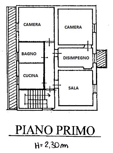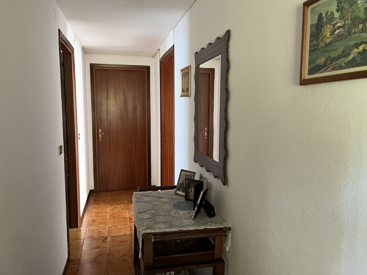 Accedendo alla proprietà, dopo aver comodamente parcheggiato nel posto auto situato nelle immediate vicinanze del portone di ingresso, un vano scale conduce fino al primo piano dove un lungo corridoio mette in comunicazione tutti i locali dell’appartamento.