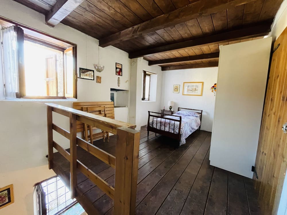 Al primo piano, che si raggiunge tramite una scala interna in legno, troviamo la zona notte con due camere da letto matrimoniali  ed un bagno con box doccia.
