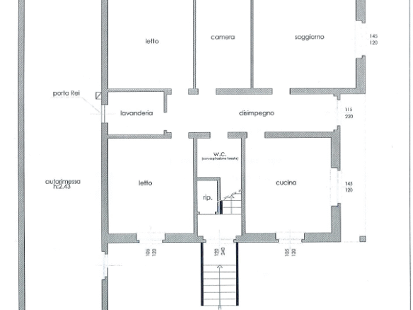 Gli appartamenti al primo ed al secondo piano hanno la distribuzione simile dei locali dell’appartamento al piano terra, differiscono unicamente nella posizione del locale bagno. A differenza del primo piano, gli accessi sono raggiungibili percorrendo la scala comune con arrivo diretto in ogni appartamento a metà corridoio. L’appartamento all’ultimo piano è mansardato ma grazie ad una recente e moderna ristrutturazione risulta essere il più arioso grazie alla zona giorno open space.