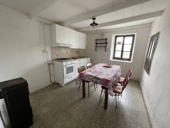 L’abitazione di ben 80 mq è ripartita su due piani. L’ingresso al piano terra conduce, tramite porta finestra, direttamente alla sala dove da un unico spazioso ambiente arricchito con un imponente camino insasso si possono raggiungere il locale cucina, il locale bagno e la tipica scala in legno che conduce alla zona notte al piano superiore.