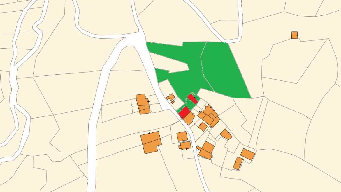 La proprietà si estende su una superficie di circa 2200 metri quadrati, composta in buona parte da terreno seminativo attualmente punteggiato da un variegato assortimento di ciliegi e di amareni dai frutti succulenti.
