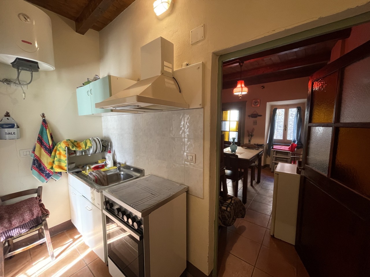 L’abitazione di ben 60 mq si divide tra il primo e del secondo piano con accesso diretto al piano terra proprio all’inizio del vicoletto tutt’ora conservato con il ciottolato originale tipico del centro storico Bardigiano.