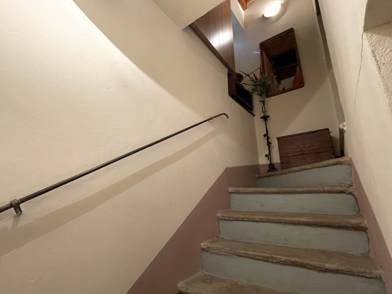 Salendo la scala in legno ben conservata, al primo piano, si entra nell’unica camera da letto molto accogliente grazie alle rifiniture originali mantenute negli anni.