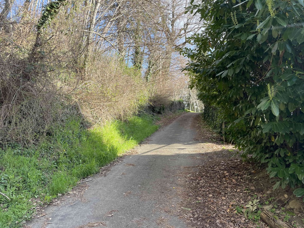 Al termine del passaggio si apre un vero ritaglio di paradiso: un ampio spazio verde immerso nella quiete, animato da fioriture stagionali e da un prato curato con grande attenzione.