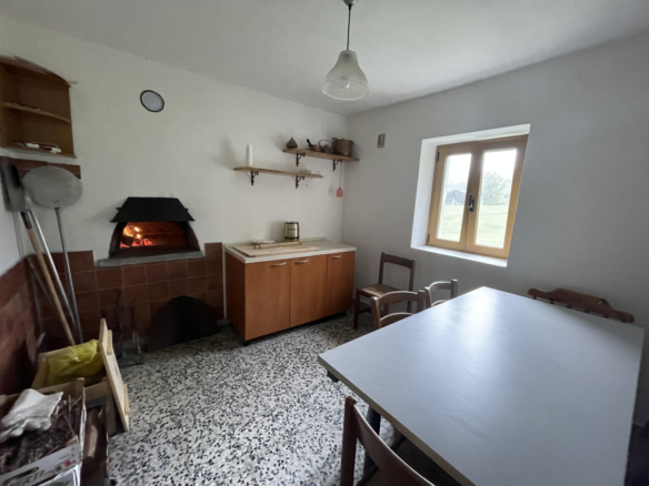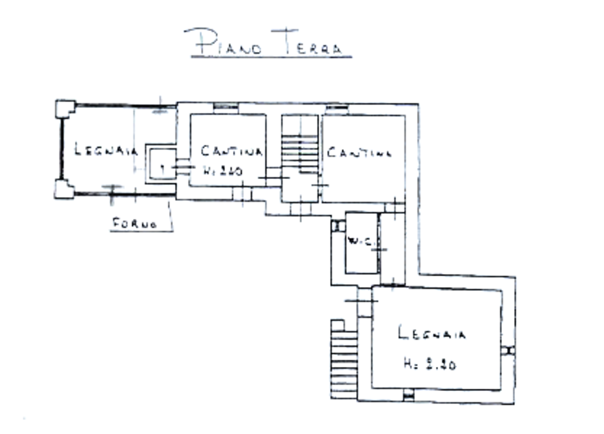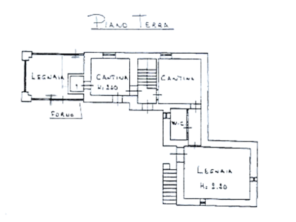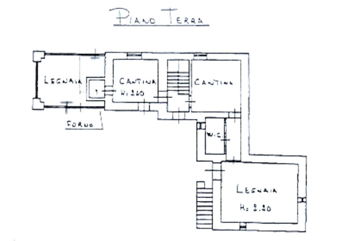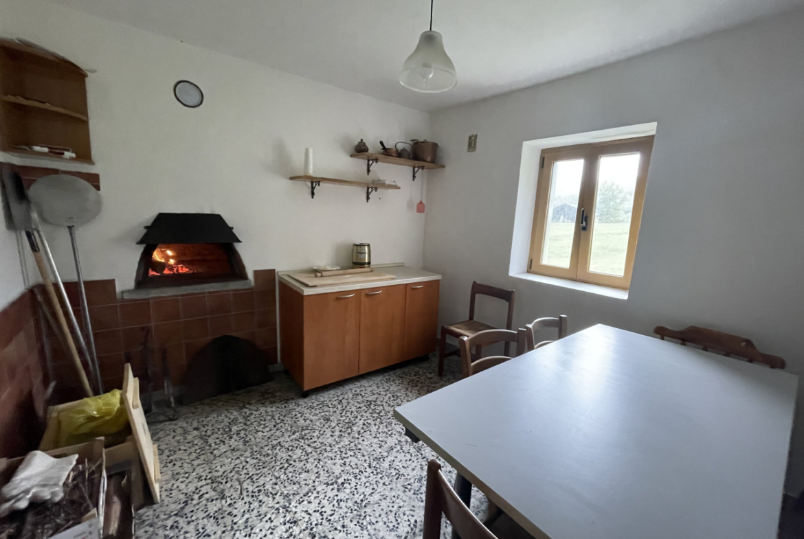 Ci sono tre accessi al piano terra, uno diretto nel locale legnaia, uno nel caratteristico locale con forno a legna e un ulteriore al disimpegno della scala interna che consente di salire fino al primo piano. Completa il piano terra un locale bagno ed un salottino.