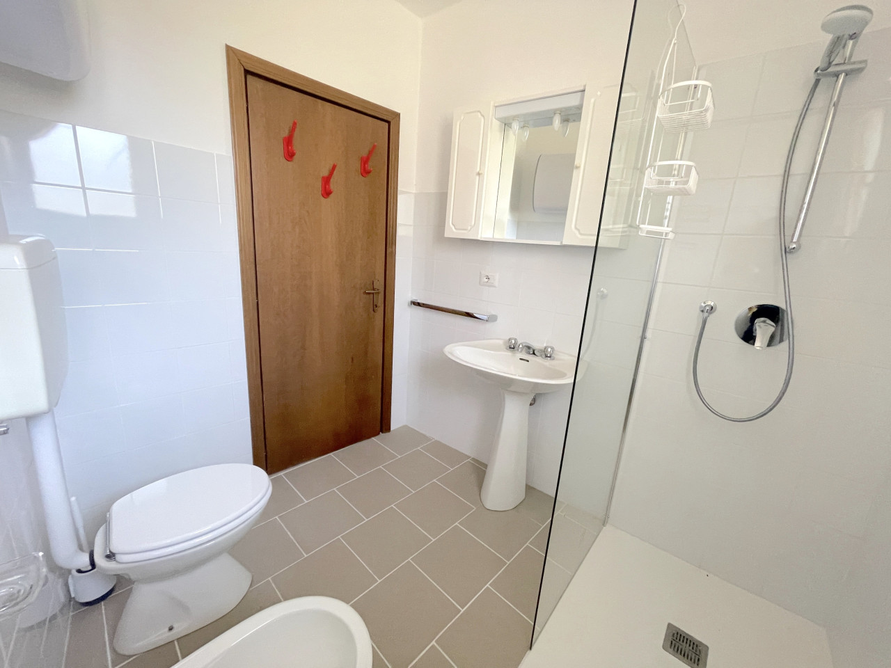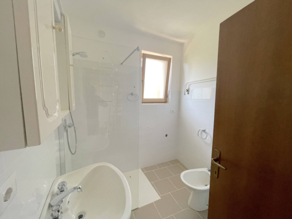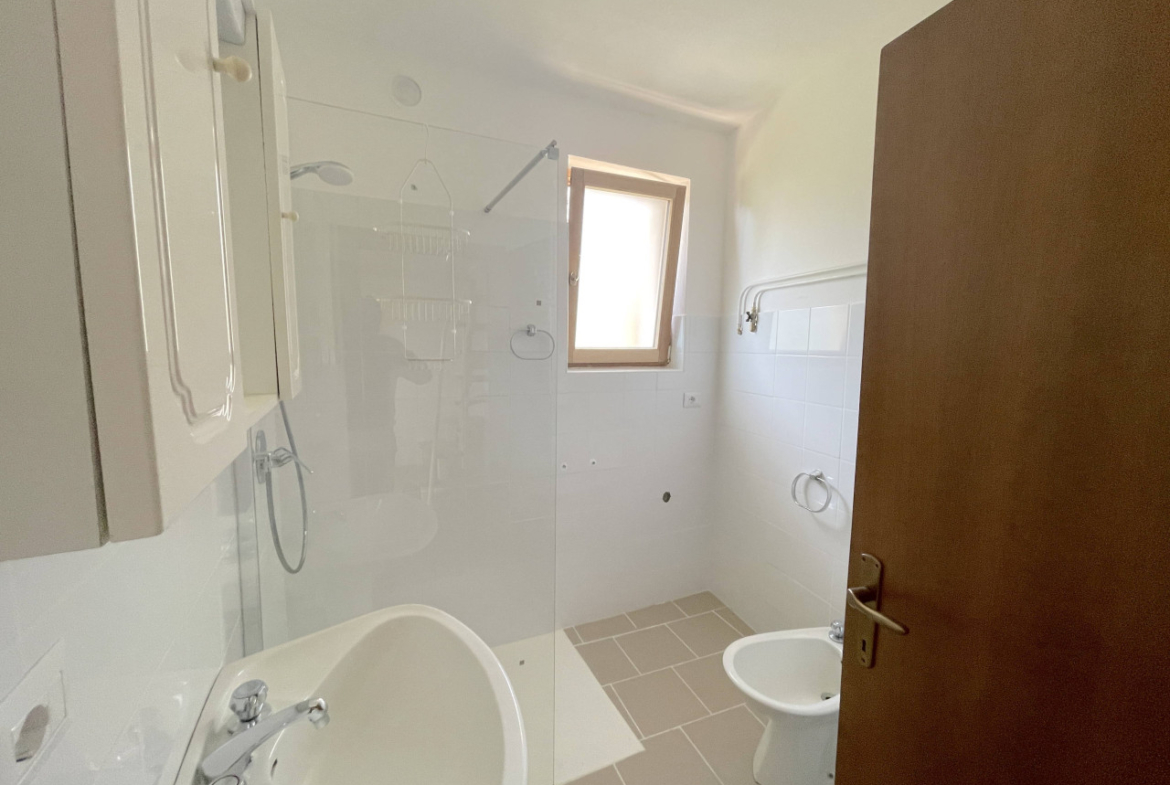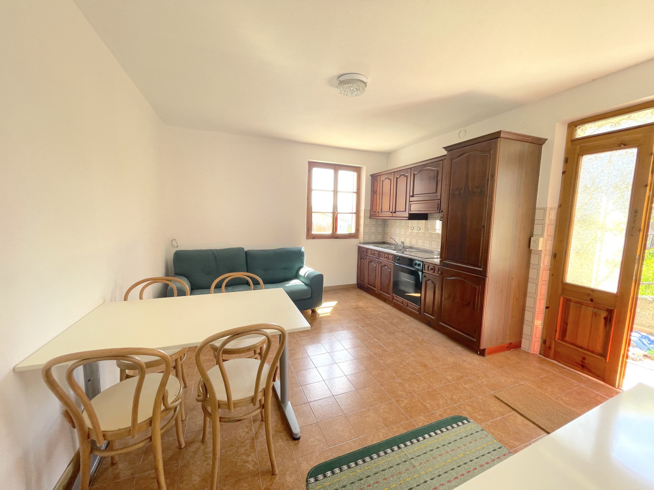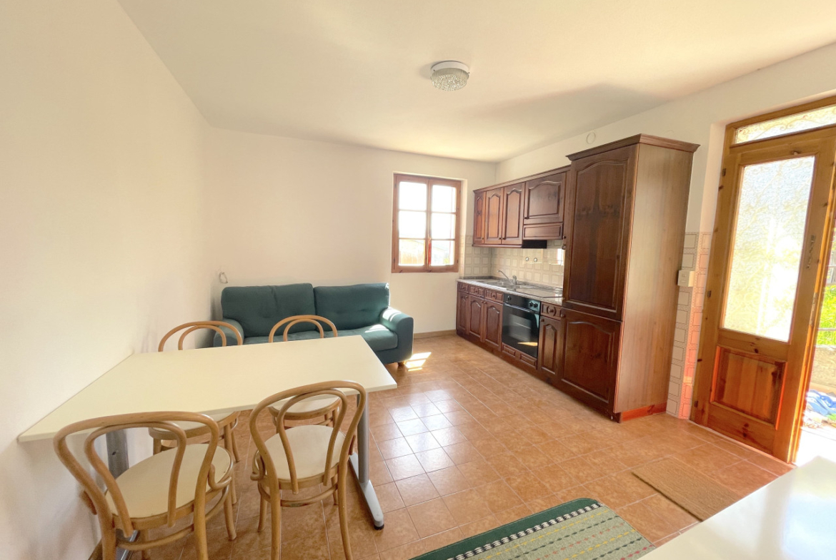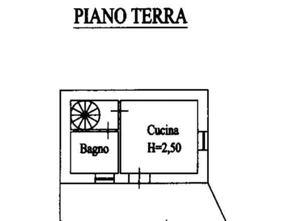 L’ingresso principale, a piano terra, immette direttamente nella sala da pranzo, arricchita da angolo cottura, la quale unitamente al locale bagno, finestrato con doccia, completa il piano terra.