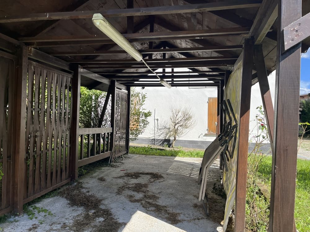 L’accesso all’autorimessa di circa 70mq, staccata dall’edificio principale, si trova comodamente in prossimità del il cancello d’ingresso.