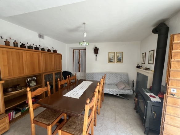 Impianti presenti: la copertura ospita un impianto fotovoltaico tuttora funzionante e l’abitazione gode della presenza di 2 camini ornamentali in sasso nonché di una stufa a legna nel corridoio.