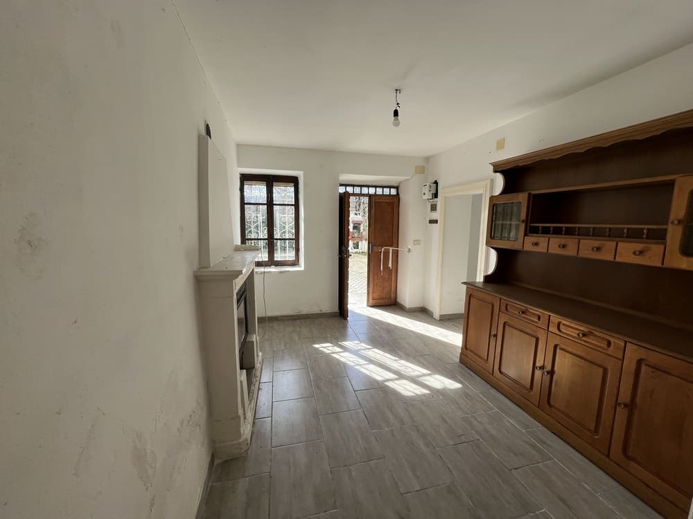 Gli accessi all’abitazione sono tre: due ingressi al piano terra, entrambi affacciati direttamente sul giardino, e un terzo ingresso al primo piano, raggiungibile tramite scala esterna e prospiciente le vie del paese.