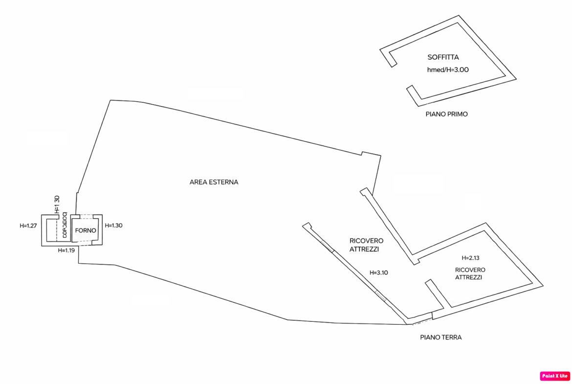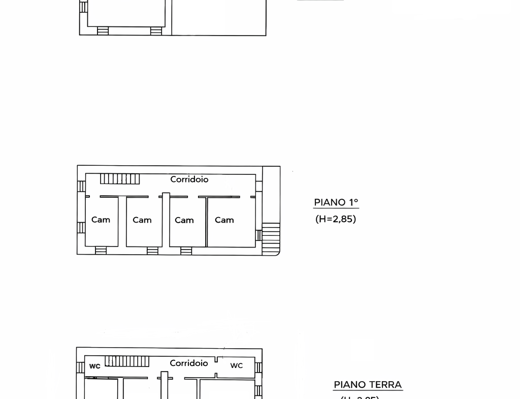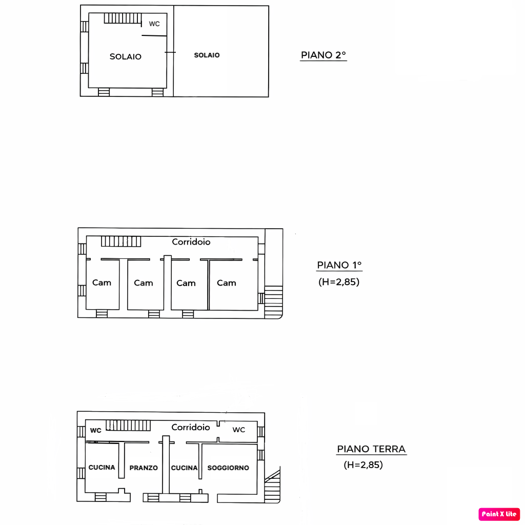 L’immobile si sviluppa su tre livelli, ciascuno di circa 80 mq, collegati tra loro mediante una scala interna.