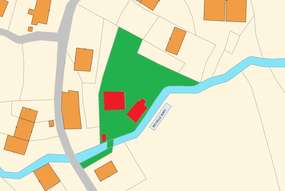 Il giardino, interamente recintabile, ampio circa 1300 mq, duetta con il fresco ruscello denominato “Rio delle nove sorti” ricreando un’ autentica oasi di pace in cui godere di riposo e relax.