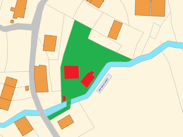 La proprietà si trova in una piccola zona residenziale ed è caratterizzata da riservatezza grazie anche al ruscello ed alla rigogliosa vegetazione che costeggiano il passaggio carraio creano una naturale barriera verde.