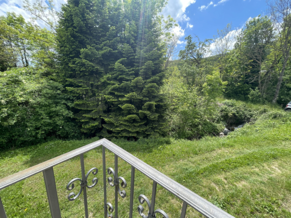 Tutto bordato da una ricca vegetazione e dal passaggio di un ruscello, il giardino di circa 450 mq è perlopiù ricoperto da aree piantumate a prato.