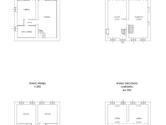 Il primo piano interamente dedicato alla zona notte è composto da 3 camere matrimoniali e da un locale bagno finestrato con vasca da bagno e doccia.
