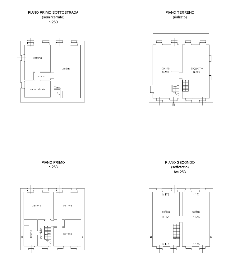 Il piano seminterrato avente due accessi indipendenti entrambi comunicanti con il giardino è composto da cantine e legnaia.