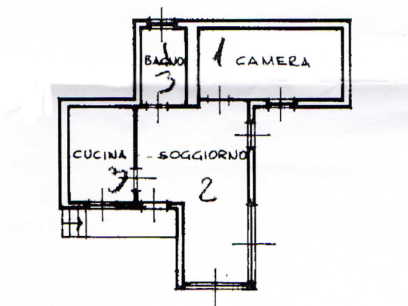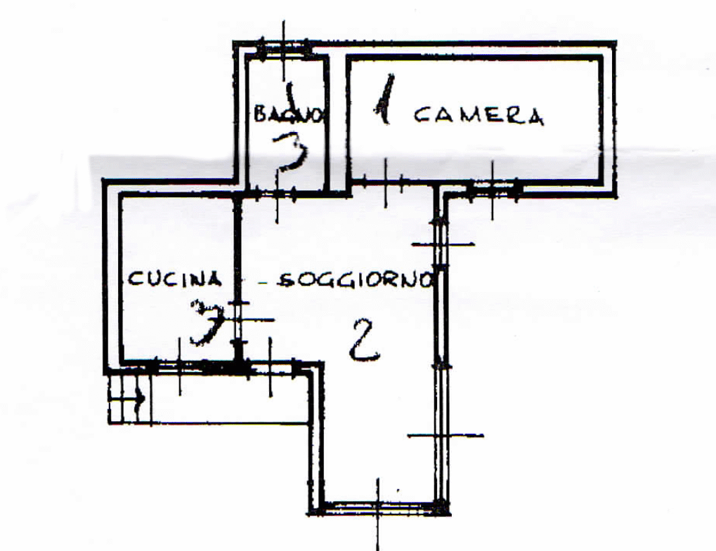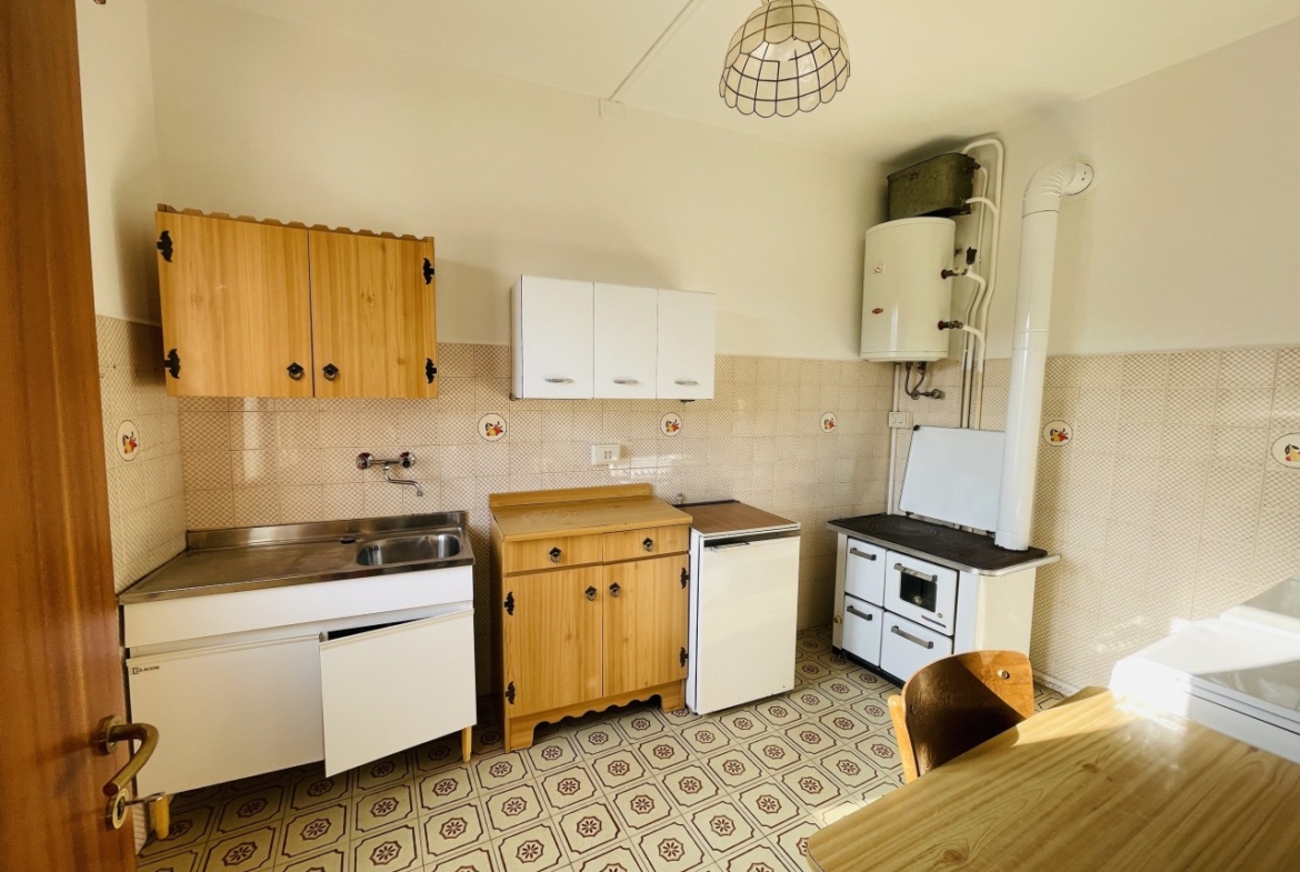 Da qui si distribuiscono in sequenza: l’ampia cucina abitabile, il locale bagno con doccia e la camera matrimoniale.