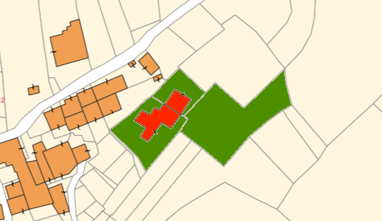 Il terreno circostante è in parte coltivato a prato, prevalentemente pianeggiante, la restante parte è costituita da terreno piantumato con alberi autoctoni, non mancano in questa area alberi da frutta