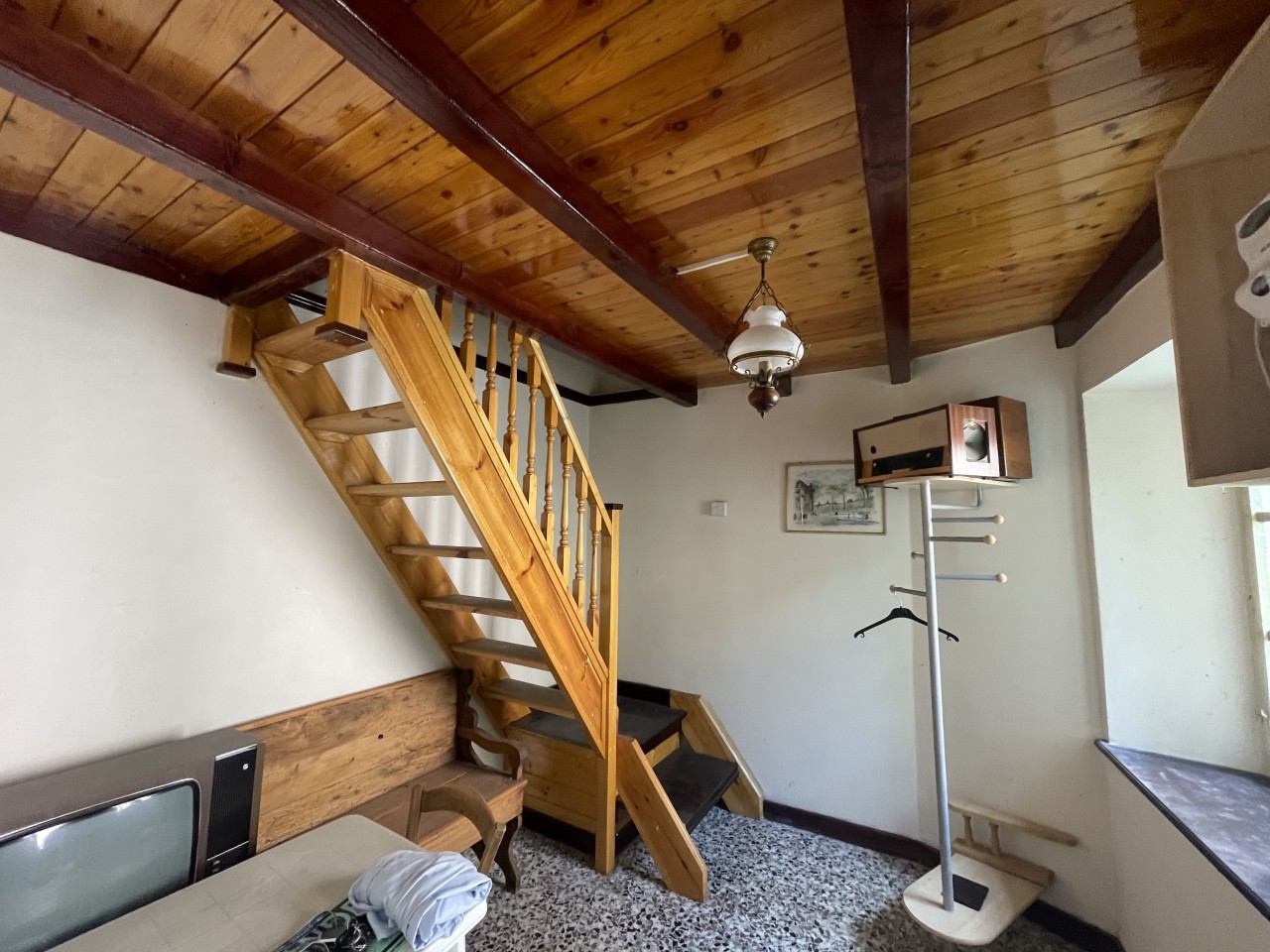 Entrando nella dimora ci si immette direttamente nel disimpegno da cui partono le caratteristiche scale in legno che conducono fino alla zona notte tutta dislocata al piano superiore.