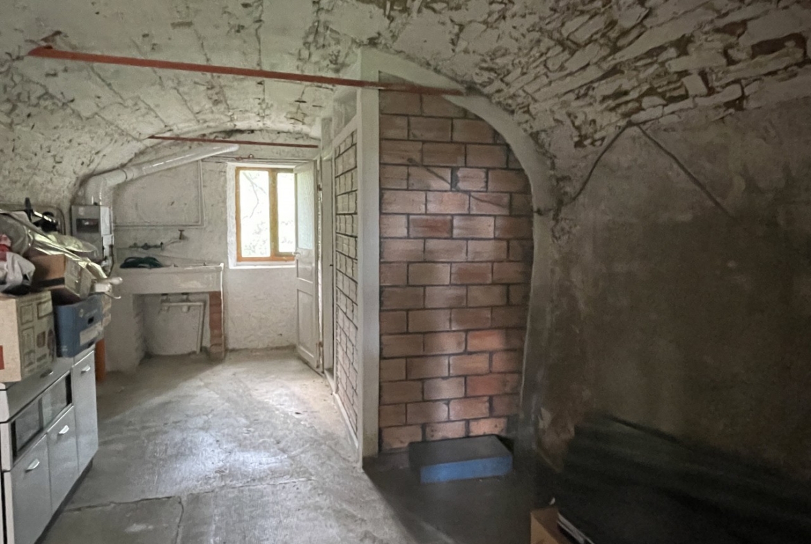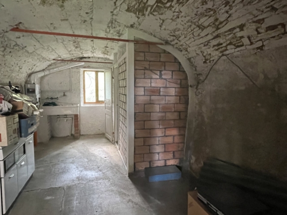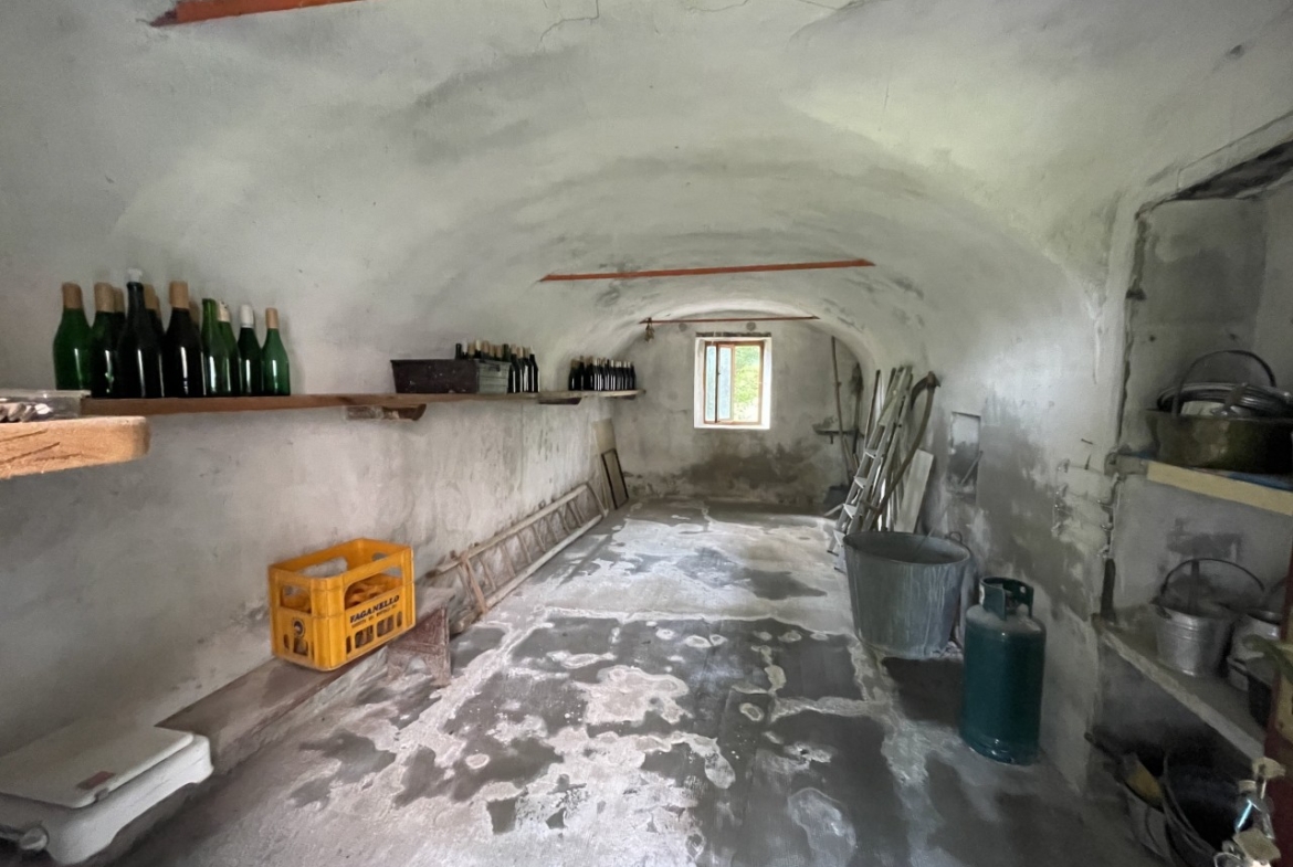 Il piano terra è interamente suddiviso tra due cantine, entrambe con copertura a botte e pavimentazione realizzata in semplice terra battuta.