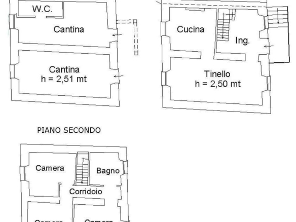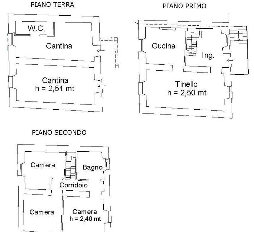 La proprietà si articola su tre piani ma l’abitazione principale occupa il primo ed il secondo piano dell’immobile raggiungibile unicamente percorrendo la scala esterna che costeggia l’immobile.