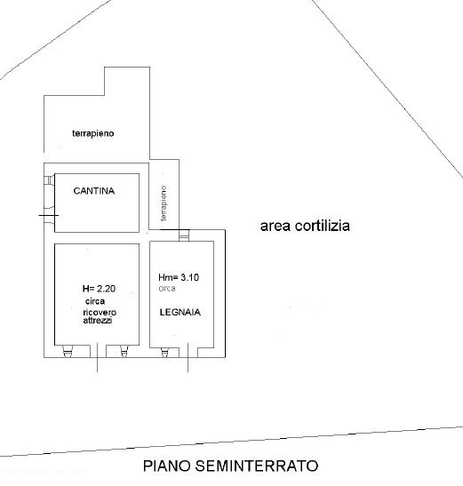Al piano seminterrato, ampia circa 55 mq e con accesso sul fronte dell’immobile, troviamo: la legnaia, la vecchia stalla e le cantine.