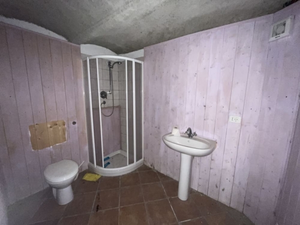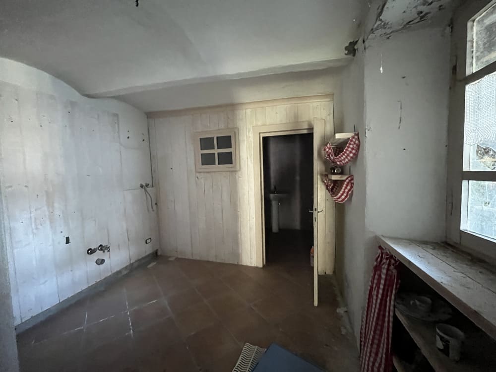 Sul fondo del locale si trova l’accesso alla cucina, già predisposta con tutti gli attacchi necessari e collegata direttamente al bagno, dotato di doccia.