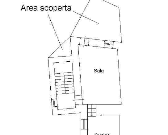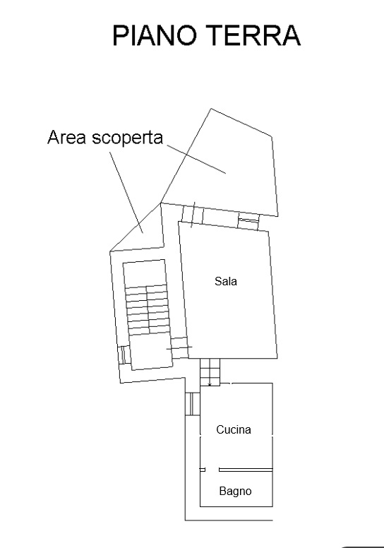 A completare il piano è presente il vano scale, comunicante con il salotto e utilizzato al piano terra anche come pratica zona lavanderia, grazie alla presenza di un lavatoio.
