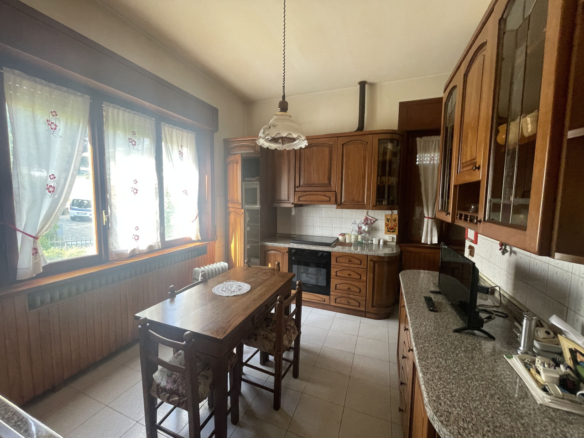 Nella parte retrostante la villa, troviamo un’ampia area coltivata a prato perfetta per essere attrezzata con gazebo, divani, tavoli e sedie tra alberi da frutto e bordure di piante aromatiche.