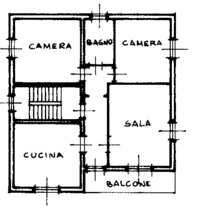 Il piano seminterrato ospita un’ autorimessa, con gli impianti termici, e due cantine, mentre l’abitazione occupa l’intero primo piano.