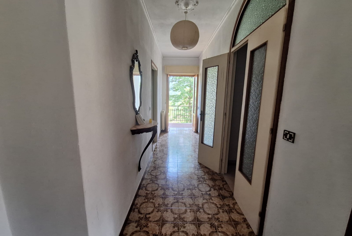 L’accesso all’appartamento introduce direttamente nel luminosissimo corridoio comunicante con il balcone panoramico.