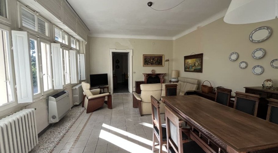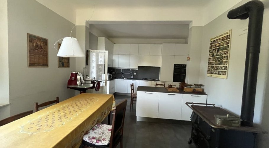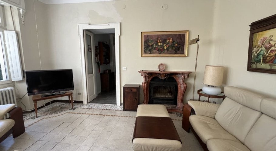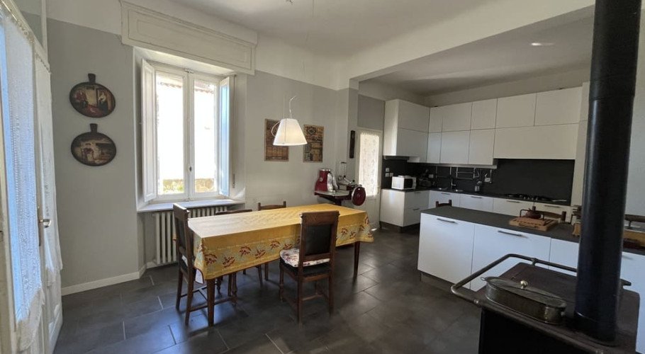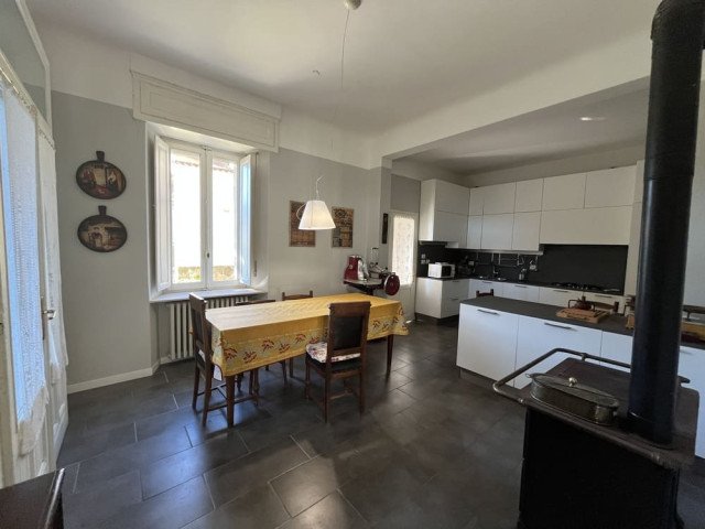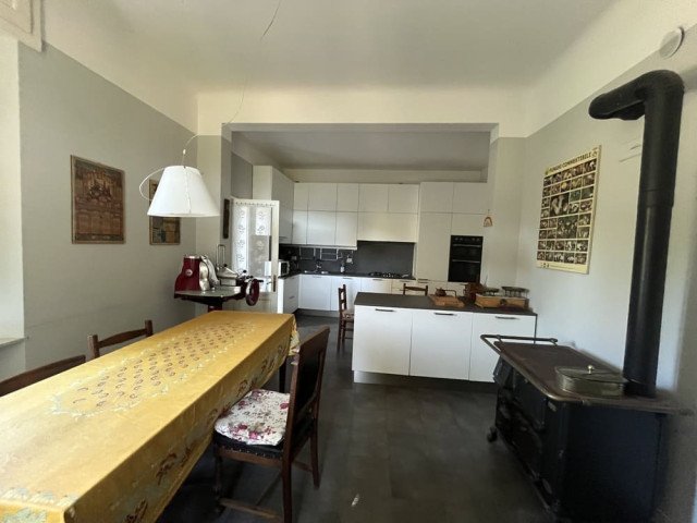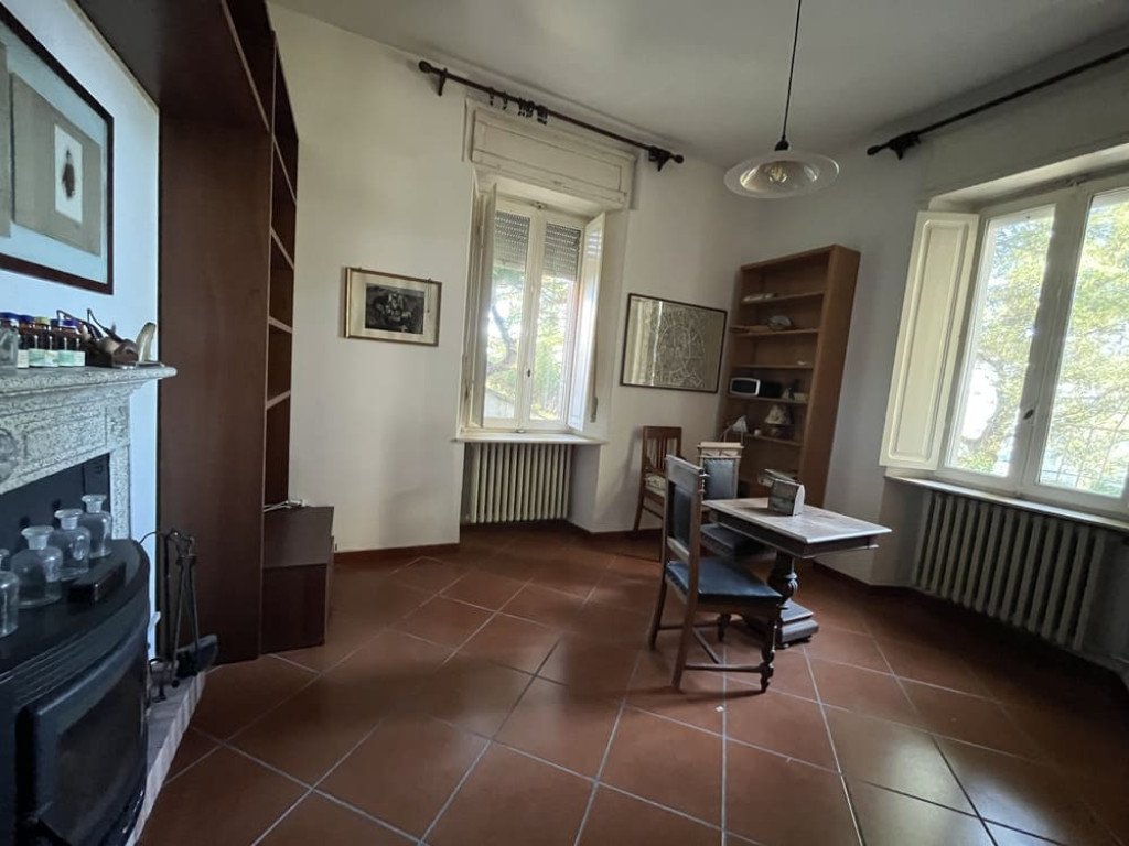 Continuing on the ground floor, you reach an office, located in a secluded spot away from distractions, served by an antique stone fireplace; The living room, also featuring a Verona red marble fireplace, and the dining room merge into a single space with the kitchen, complete with high-end appliances and two direct accesses to the garden.
