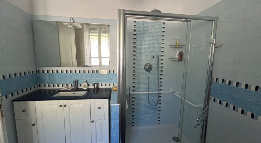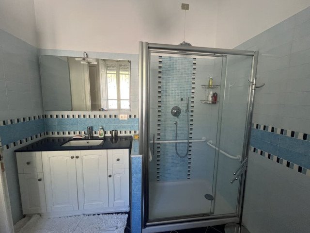 The elegance is evident as soon as you enter the gated entrance, where the well-organized garden, characterized by lush vegetation, gives way to the refined and bright interiors, enriched with high-quality finishes.