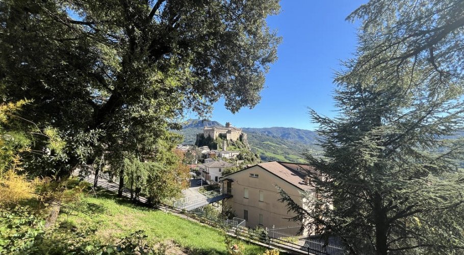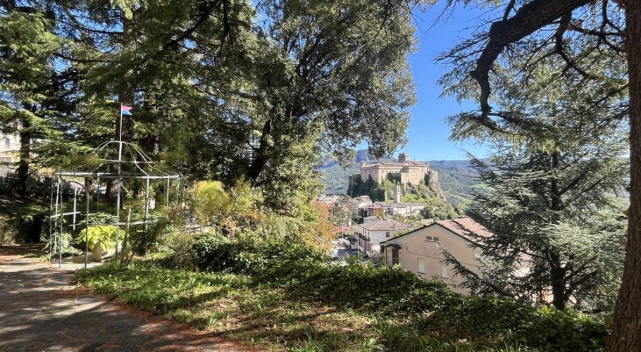 The villa is located in Bardi, 65 km west of Parma, and is best known for its imposing fortress that stands majestically on a large red jasper rock, as well as for its outstanding features.